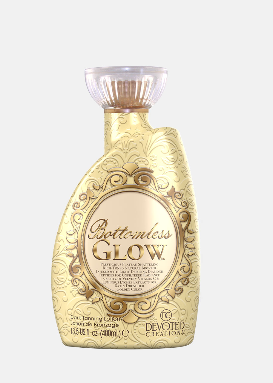 For the poshest pour of color, Bottomless Glow is your access to unfiltered and unlimited streak-free, stain-free bronzed radiance! Drenched in a plush, luminous glow that never gets cut off, this ultra-glossed DHA-free natural bronzer indulges the skin in the privilege of a perfectly polished glow. Our Auto-Darkening Complex delivers quicker, darker, longer-lasting results, while Diamond Peptides reflect light for a gleaming, glass-skin finish. Skin Airbrushing Micro algae helps to improve the appearance of texture, adding a splash of dewy brilliance for that satin-soft, glow-from-within effect. Raspberry Ketones add a boost of rich, natural color, while Golden Vitamin C, Lychee Extract, and Photosomes spritz the skin with brightening, energizing, and moisture-loving benefits that feel as lavish as they look. It’s time to go beyond bottomless - and let your skin overflow with glow.