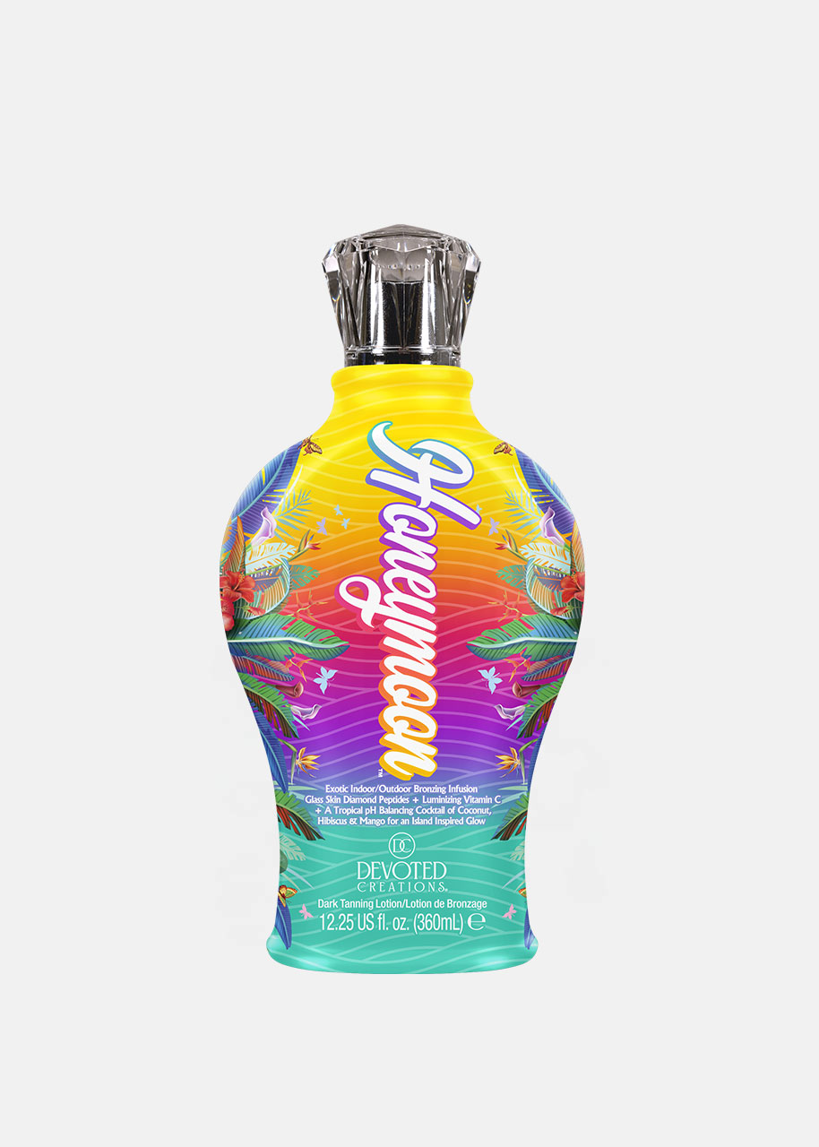 Slip away to a secluded paradise of golden skin and sultry sophistication with Honeymoon™. This intimate escape of island-inspired bronzers and skin-loving dark tan enhancers deliver breathtaking, streak-free color with every application - always leaving your skin vacation-ready. Formulated with Liquid Glass Technology for a seductive, airbrushed finish and a tropical pH balancing cocktail to help skin feel balanced, soft, and sun kissed. Diamond Peptides reflect light for a visibly firmer, blurred, glassy glow that belongs in a passport-stamped paradise. Infused with raspberry ketones for rich, longer-lasting color, and golden vitamin C to visibly brighten and refine, allowing Honeymoon to create a lust-worthy, radiant finish from sunrise to sultry night. If you’re craving secluded color, intoxicating glow, and touchable tropical skin - reserve your radiance with Devoted Creations Honeymoon™